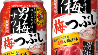 チューハイ SAPPORO 「男梅サワー 梅つぶし」1/14に限定発売。ひっくり返すと梅が踊りだす、梅をすりつぶした濃厚な梅ぇ味