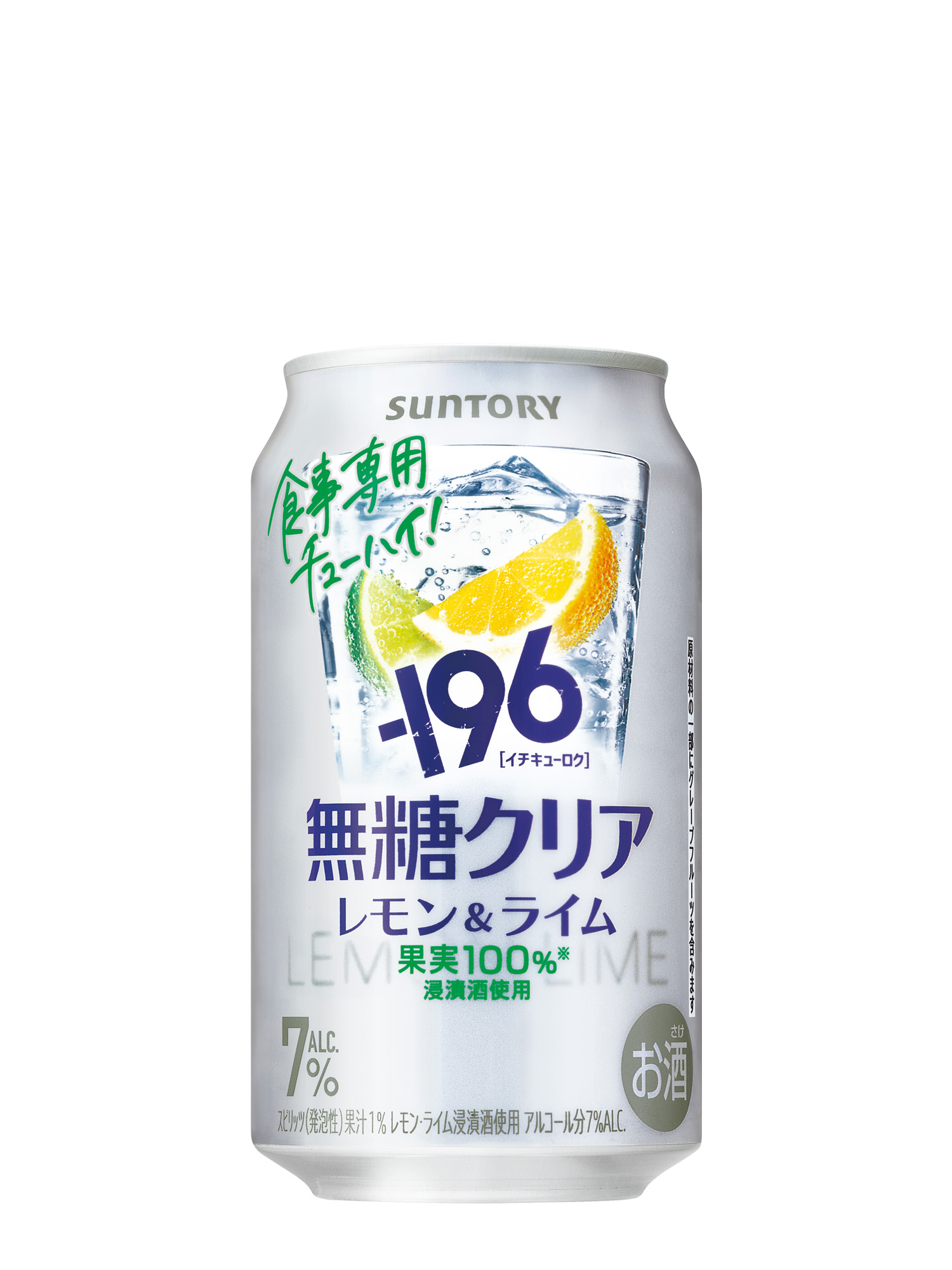 「-196無糖〈クリア〉」は“-196℃製法”によるレモン浸漬酒とライム浸漬酒を使用し、レモンとライムのバランスで食事を引き立てる軽快な味わいに仕上がっています。レモンとライムを使用したすっきりとしたチューハイなので、どんな食事とも相性はよく、特に脂っこい料理や揚げ物などは口の中をさっぱりとさせてくれ食事より楽しむことができます。さっぱり特化の食事専用チューハイ、ぜひ飲んでみてください。